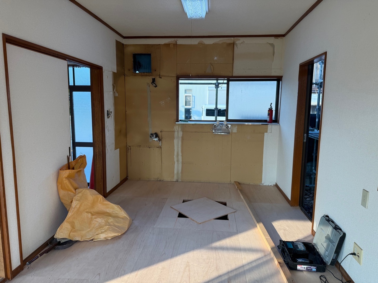 残置物もそのままなので、残置物撤去、外廻りの樹木、草の撤去作業から始めまして、ようやく、