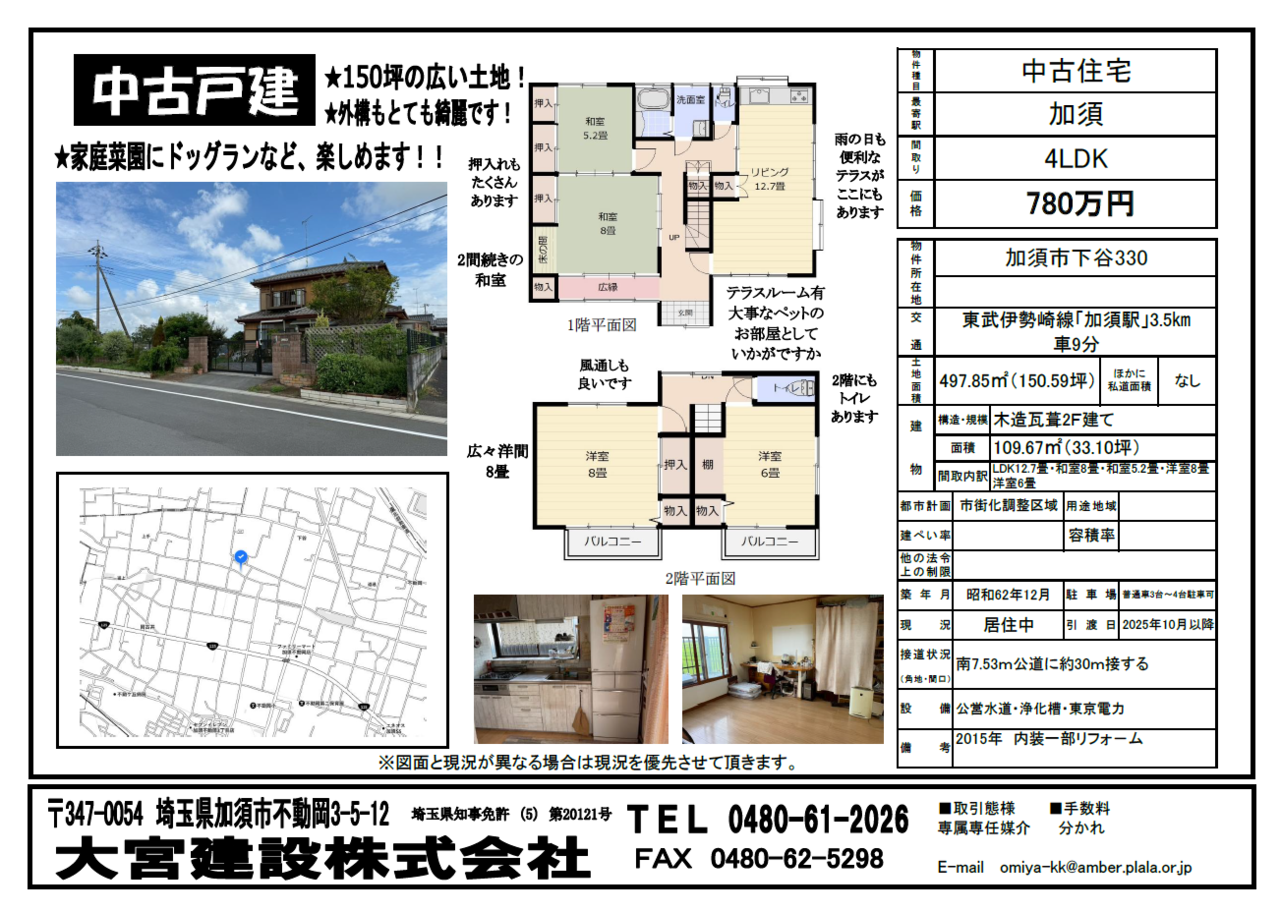 備考/土地広々150坪